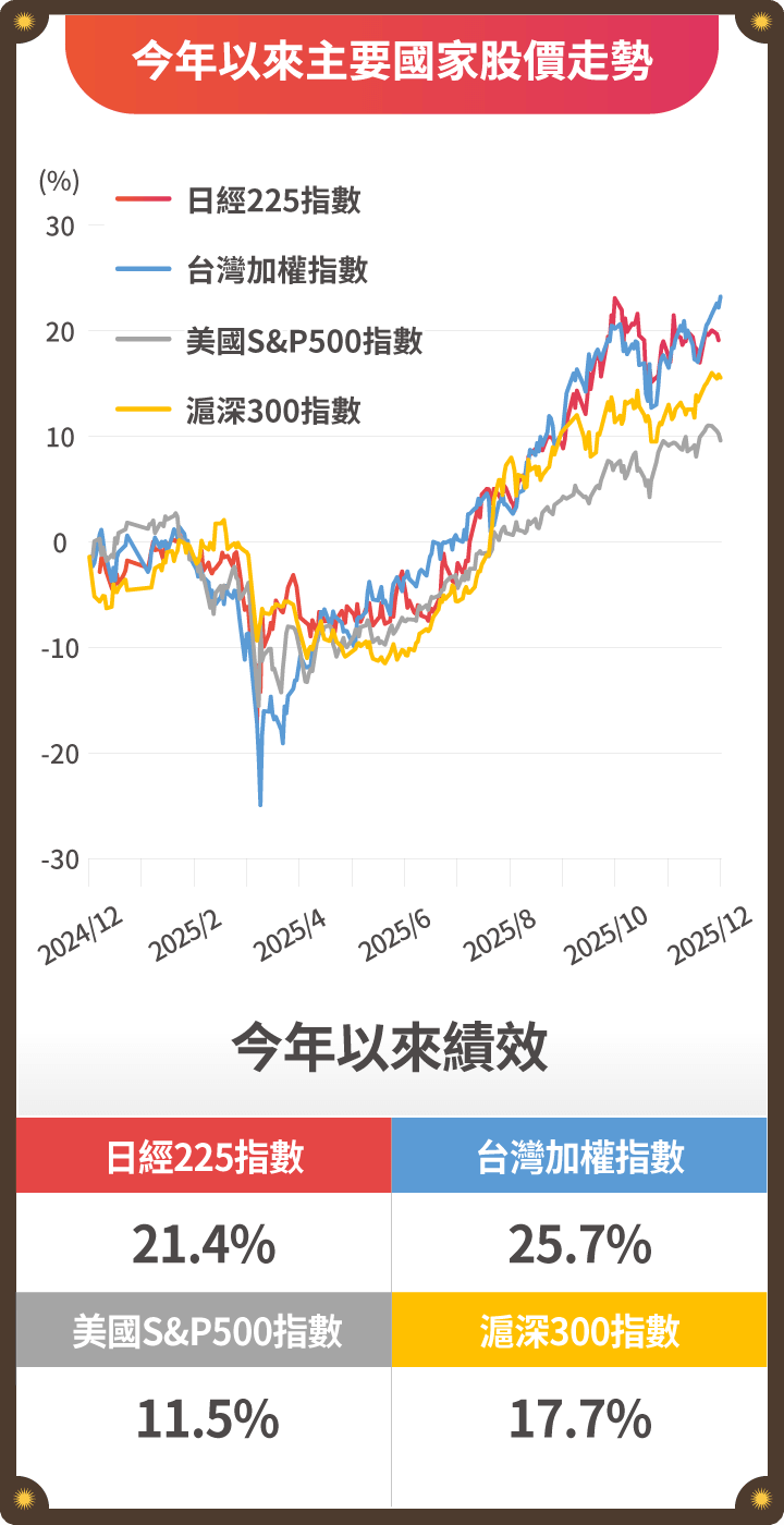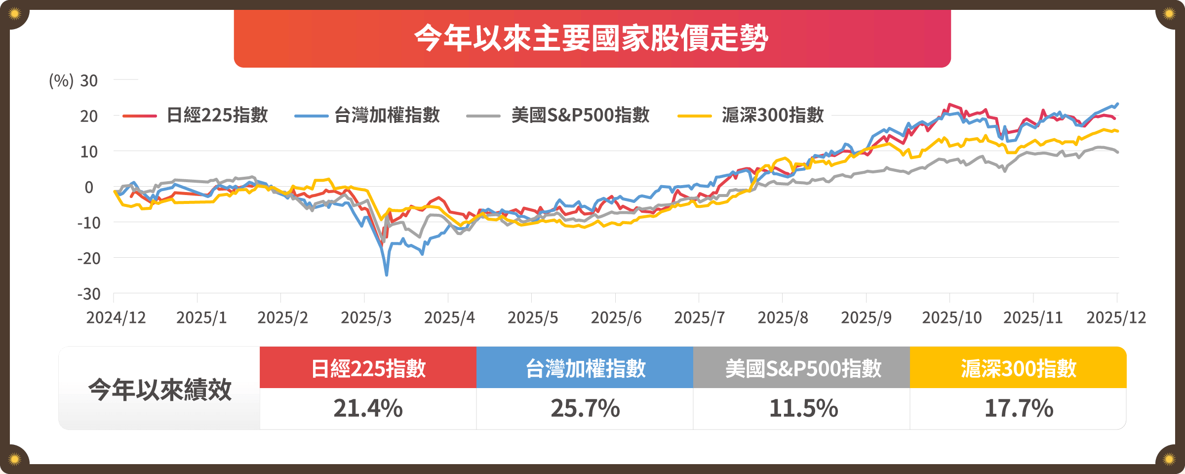 註:上圖為價格指數走勢(不含息),皆以TWD表示。資料日期:2024.12.31~2025.12.31