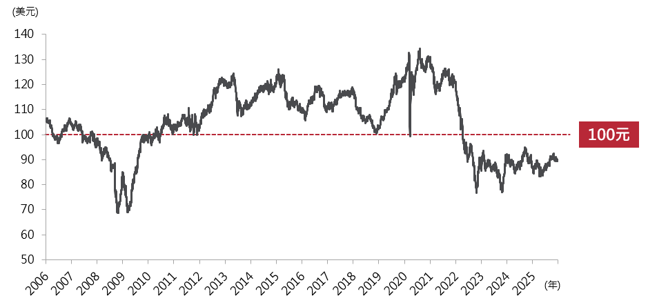 以上資料為舉例說明,不代表未來實際績效。以彭博全球投資等級美元金融債指數(I00161US)為例;指數名稱後方所示為彭博代號。資料來源:Bloomberg,期間2006/1/1~2025/12/31。