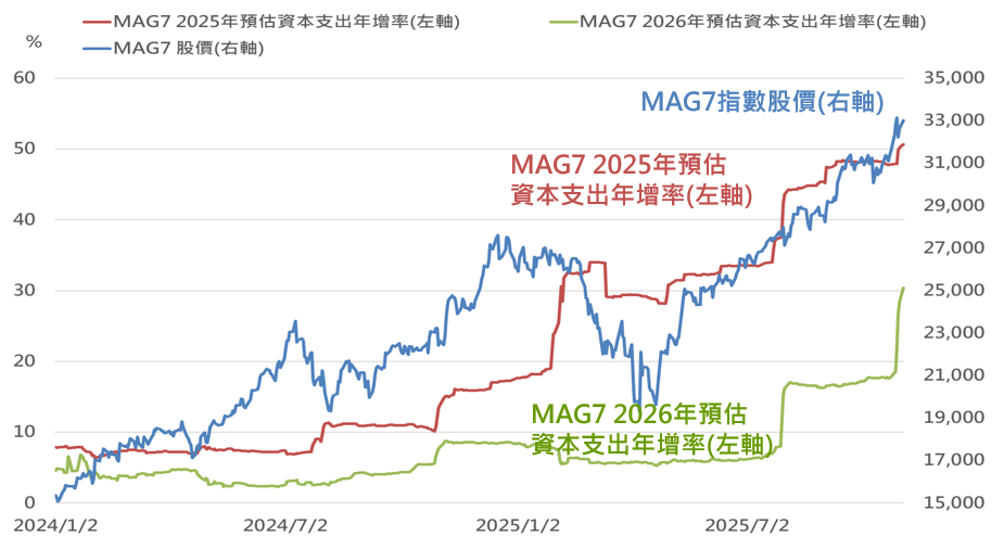 此外,根據Bloomberg資料顯示,大型科技業資本支出的預估值不斷上修,更將支撐未來成長預估,並可望帶動股價持續向上。
